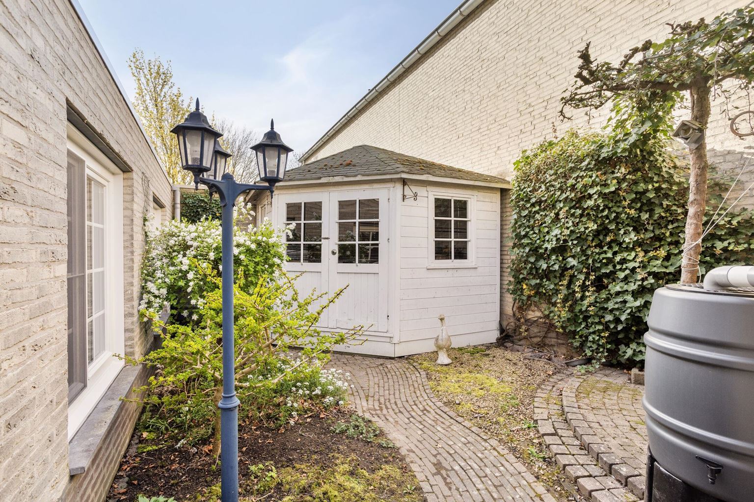 De stadstuin beschikt over twee bergingen van respectievelijk 8m² en 4m², ideaal voor het stallen van fietsen en het opbergen van gereedschap. Daarnaast is de tuin voorzien van een handige zij-ingang.