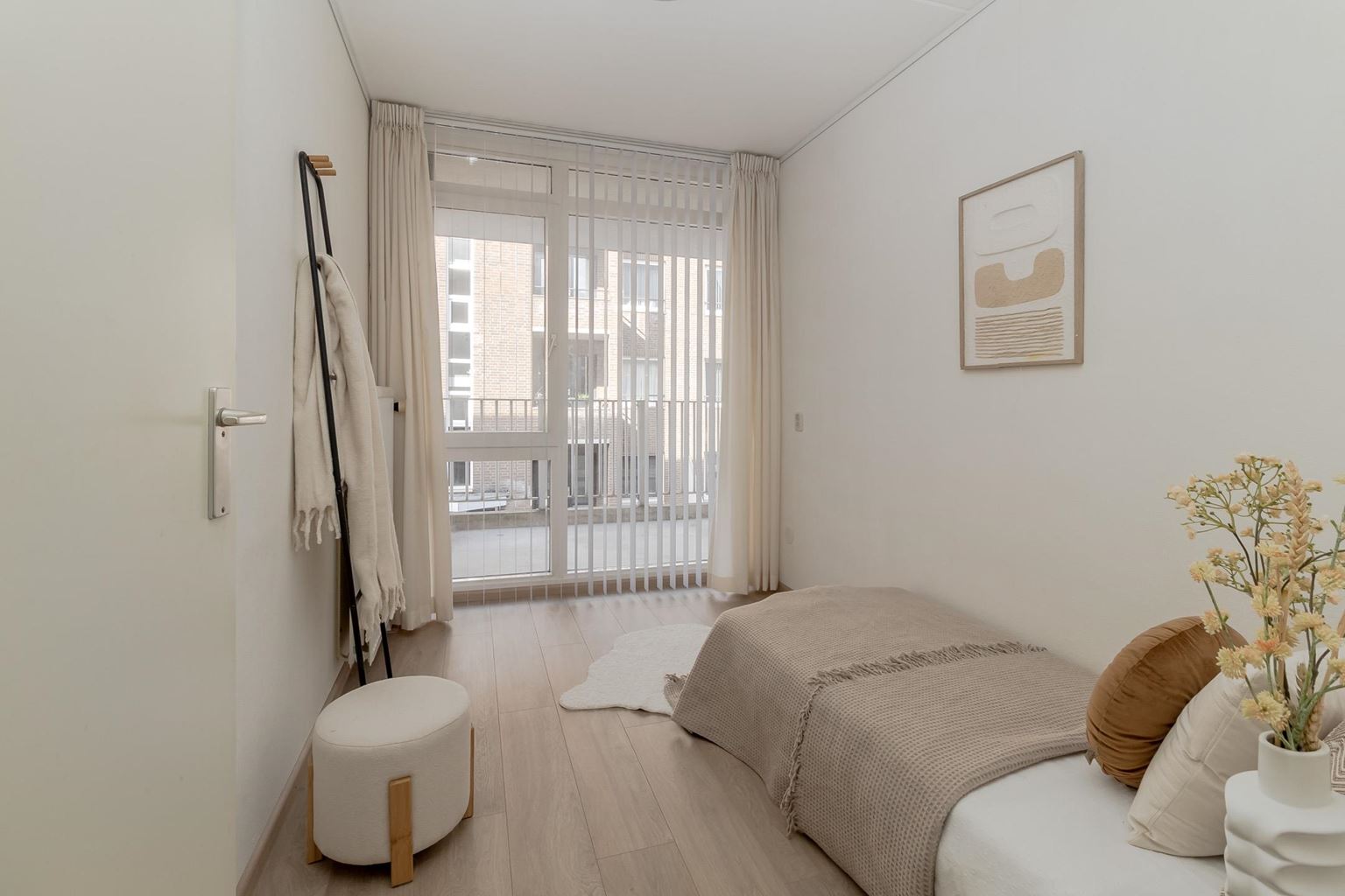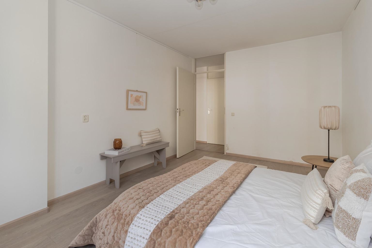 Het appartement beschikt over twee slaapkamers, respectievelijk ca. 14 m² en ca. 7 m². De hoofdslaapkamer is ruim van opzet en biedt volop ruimte voor een tweepersoonsbed en kastruimte. De tweede slaapkamer is multifunctioneel en ideaal te gebruiken als werk-, logeer- of kinderkamer.