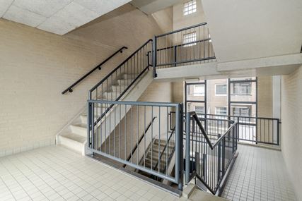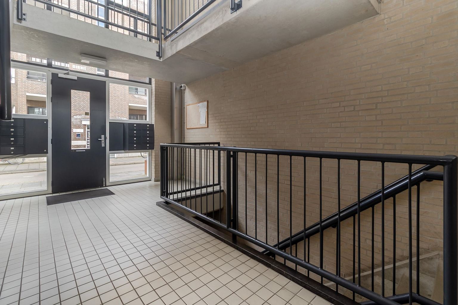 Verzorgde centrale entree met bellentableau, brievenbussen en toegang tot het ruim opgezette trappenhuis.