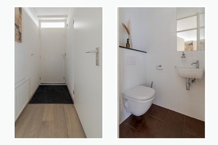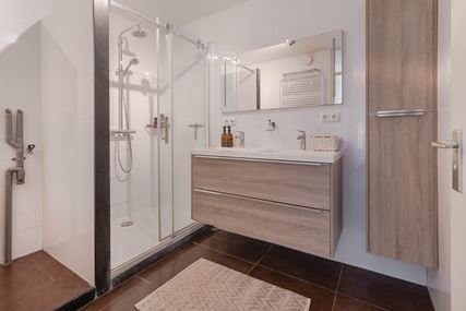 De badkamer is verzorgd uitgevoerd en voorzien van een inloopdouche en een wastafelmeubel. Tevens bevindt zich hier de aansluiting voor het witgoed. Het toilet is separaat en bereikbaar vanuit de hal.