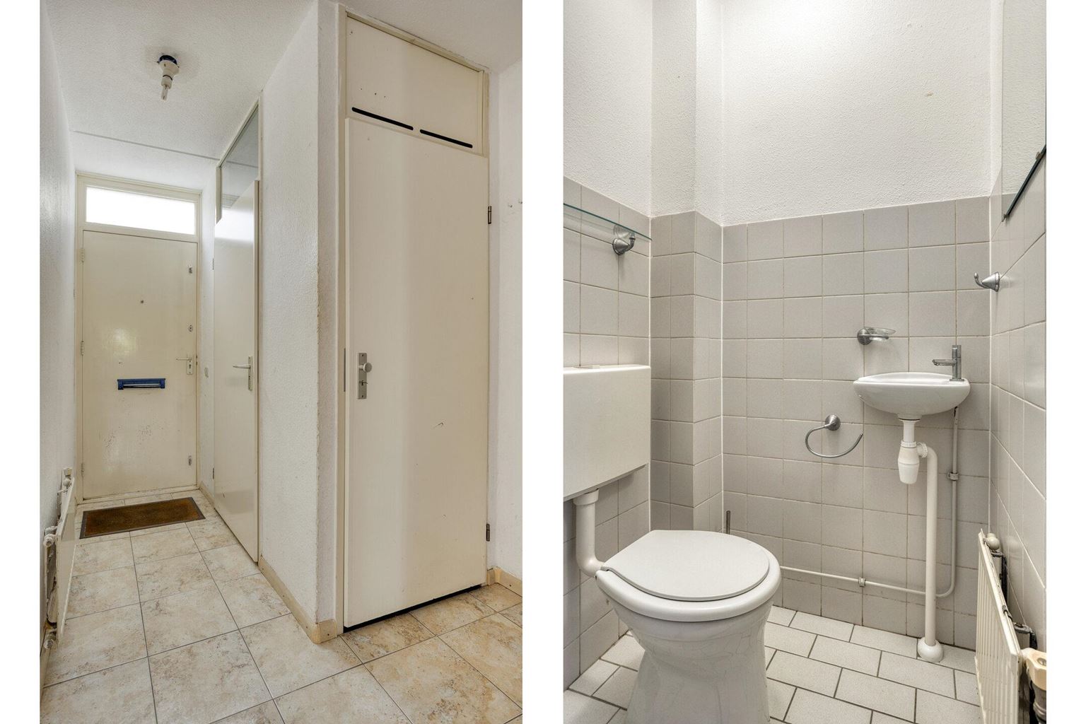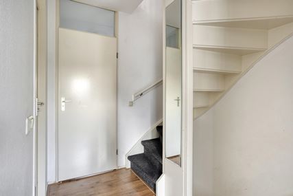 Via het terras aan de voorzijde en een trapopgang bereikt u de entree/hal van de woning. De hal biedt toegang tot de meterkast, het toilet met fonteintje en de trap naar de eerste verdieping. De lichte woonkamer (31m²) is voorzien van een parketvloer en beschikt over grote ramen aan zowel de voor- als achterzijde, wat zorgt voor een prettige lichtinval. Vanuit de woonkamer is het terras aan de voorzijde en de achtertuin te bereiden middels openslaande deur. De woonkamer is eveneens voorzien van een trapkast voor extra bergruimte.