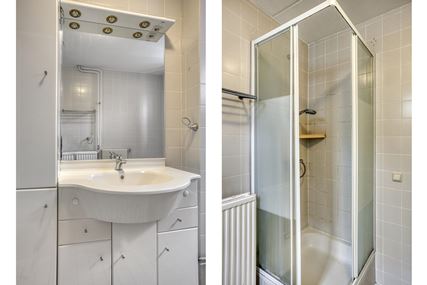 Op de eerste verdieping bevinden zich twee ruime slaapkamers. Slaapkamer 1 (17m²) is gelegen aan de achterzijde over de volledige breedte van de woning. Slaapkamer 2 (13m²) is aan de voorzijde gelegen met toegang tot een balkon (5m²). Beide slaapkamers zijn voorzien van een laminaatvloer. De badkamer (6m²) is volledig betegeld en voorzien van een ligbad, aparte douche, staand toilet en een wastafel met meubel.