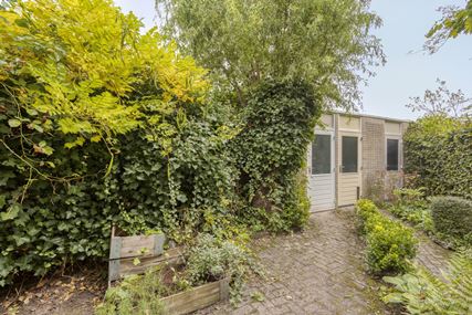 De achtertuin is gelegen op het oosten en beschikt over een stenen berging (6m²) en een praktische achterom.