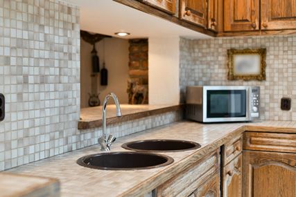 | Keuken apparatuur | : | dubbele spoelbak, 4 pits kookplaat, gas, oven, koelkast tafelmodel met vriesvak, afzuigkap |
