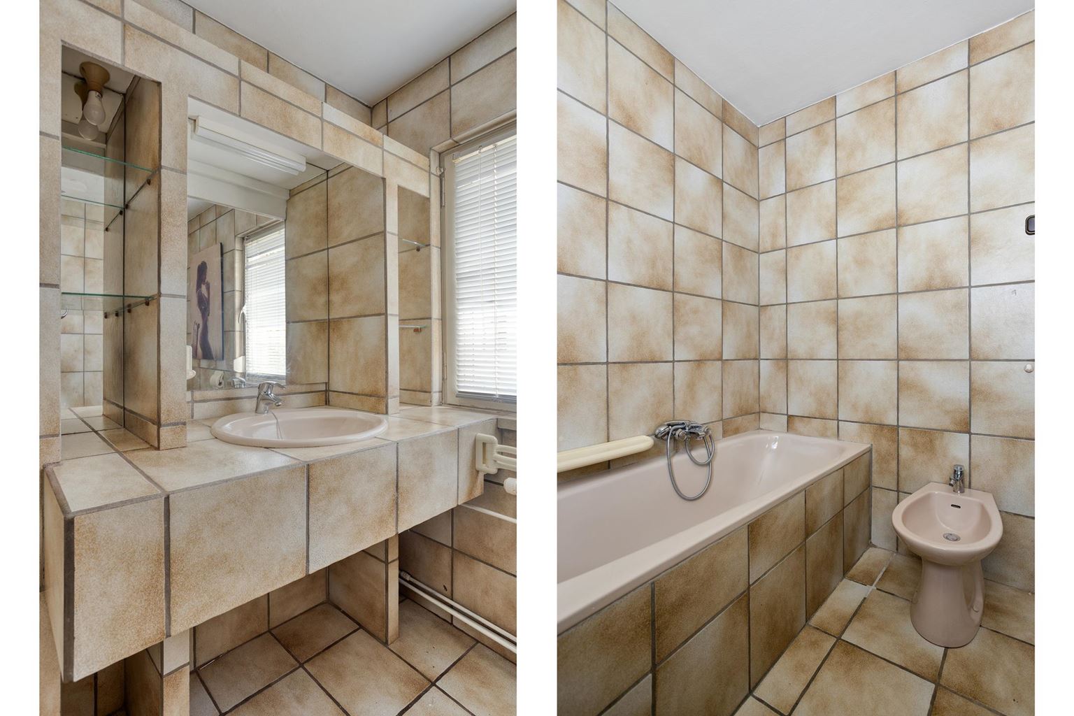 Middels vaste trap te bereiken overloop (ca. 4,5m²) van de eerste verdieping met toegang tot 3 slaapkamers en 2 badkamers. Slaapkamer I (ca. 11m²) bevindt zich aan de voorzijde van het pand en geeft toegang tot het balkon (ca. 3m²). Deze kamer heeft ook een rolluik aan de straatzijde. Slaapkamer II en III (respectievelijk ca. 11 en 8m²) bevinden zich aan de achterzijde van de woning. De slaapkamers zijn allen voorzien van vloerbedekking, houten kozijnen met enkel glas en rolluiken. Badkamer I (ca. 5,5m²) bevindt zich aan de straatzijde en is geheel betegeld en voorzien van een ligbad, staand closet, bidet en een wastafelmeubel met onderkast. Badkamer II (ca. 2,5m²) bevindt zich tussen 2 slaapkamers en is geheel betegeld en voorzien van een douche.