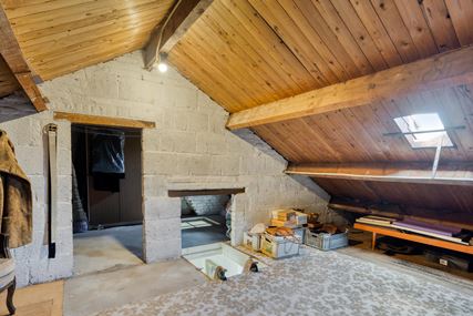 Via vlizotrap te bereiken ruime bergzolder (inpandige ruimte ca. 18,5m²) en een nokhoogte van ca. 2,10m. De zolder beschikt over een betonnen verdiepingsvloer en 2 dakraampjes. Tevens bevinden zich hier de opstelling van de Cv-ketel (merk: Intergas huur & bouwjaar 2020) en de aansluitpunten voor de wasmachine. Naast de vlizotrap is al een voorziening in de vloer gemaakt om een vaste trap te plaatsen, waardoor de zolder geheel bij de woonruimte getrokken kan worden. Dus optioneel zijn hier voldoende mogelijkheden voor het realiseren van een extra slaapkamer.