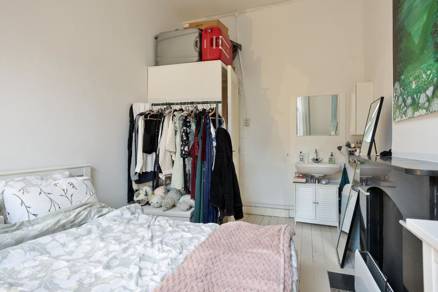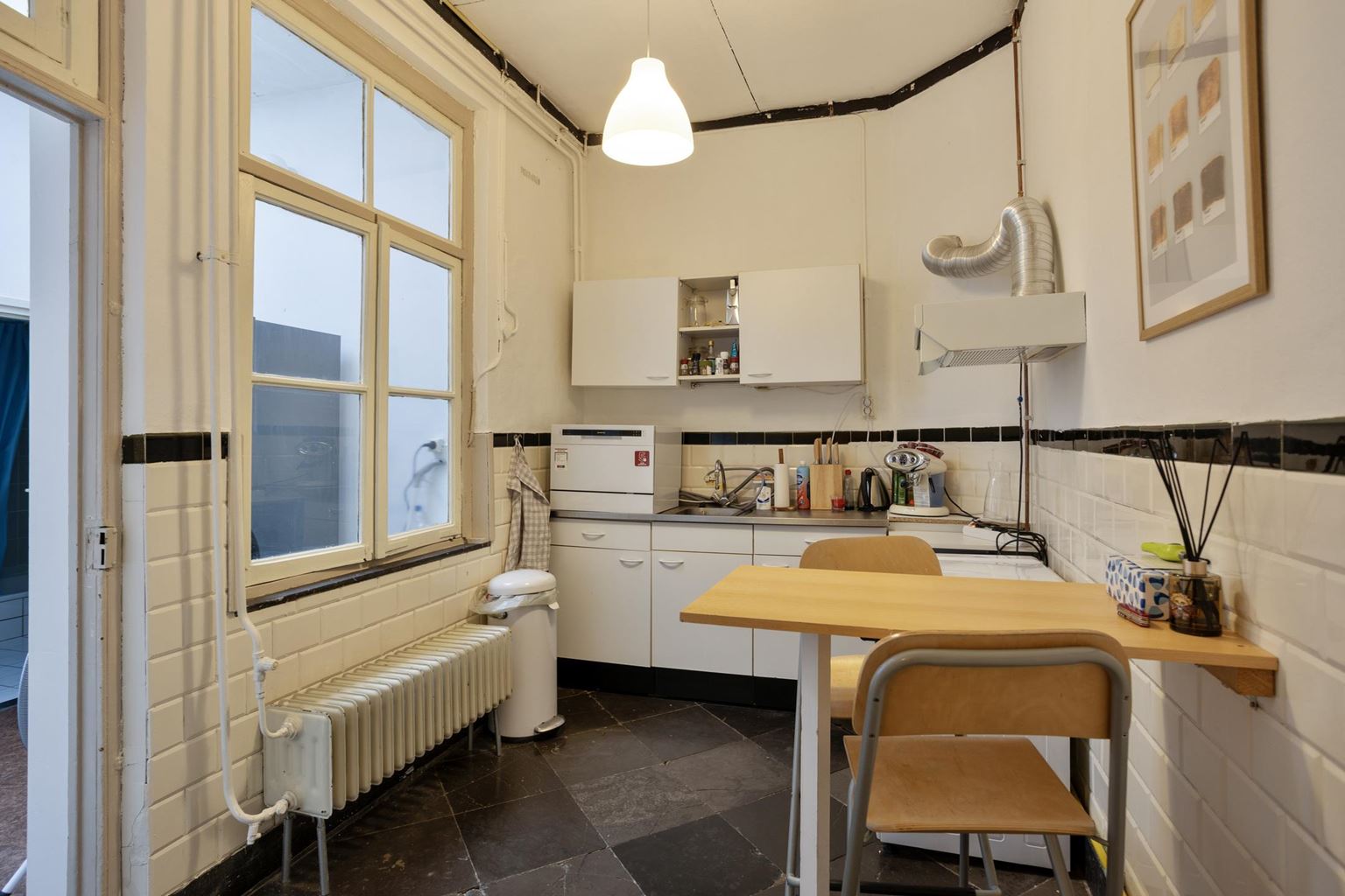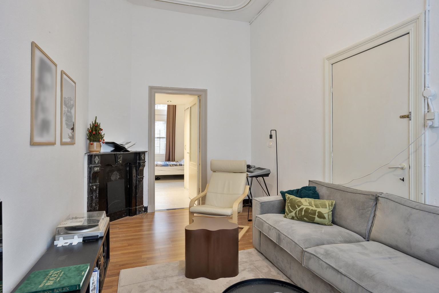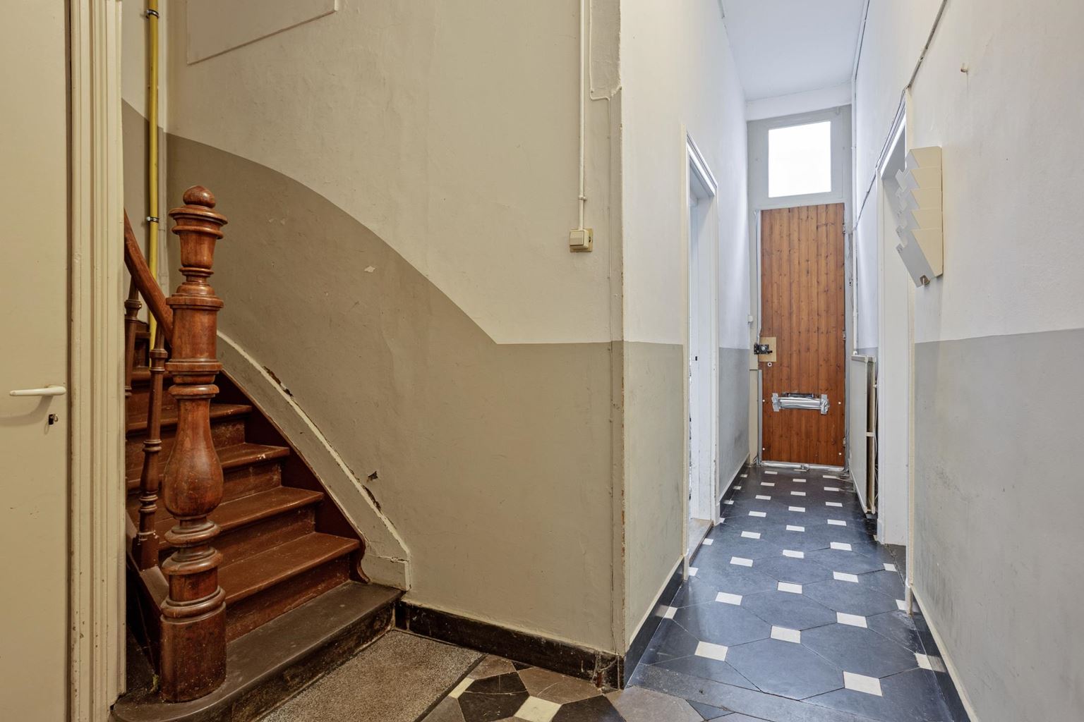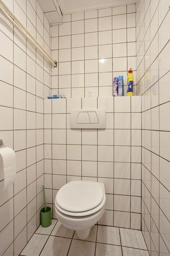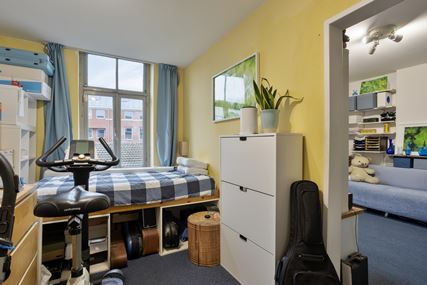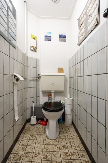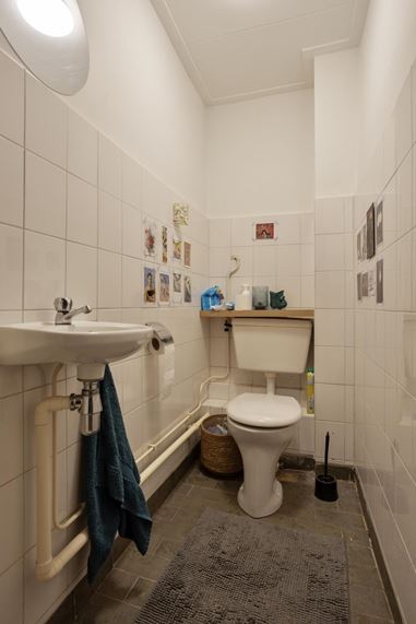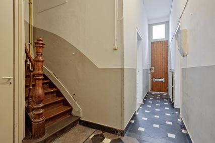 Op de eerste verdieping bevindt zich een appartement dat via twee deuren toegankelijk is via de gemeenschappelijke overloop. De indeling bestaat uit een woonkamer aan de voorzijde, een separate keuken met gescheiden eetkamer, een slaapkamer en een badkamer. Door de logische opzet zijn de verschillende functies binnen het appartement duidelijk van elkaar gescheiden, wat zorgt voor een courante verhuurindeling.