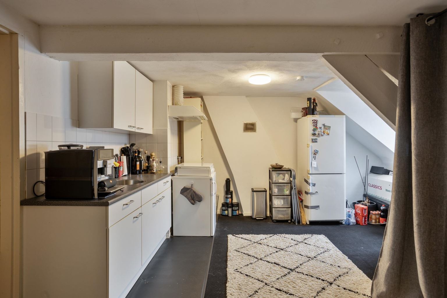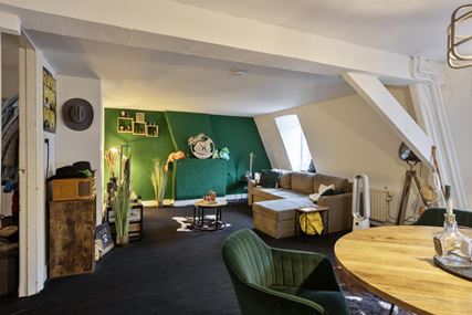 De bovenste woonlaag beschikt over een appartement dat ten opzichte van de andere appartementen uniek is qua indeling. Het appartement is ingedeeld met een woonkamer, een ruime separate keuken, een slaapkamer en een badkamer.