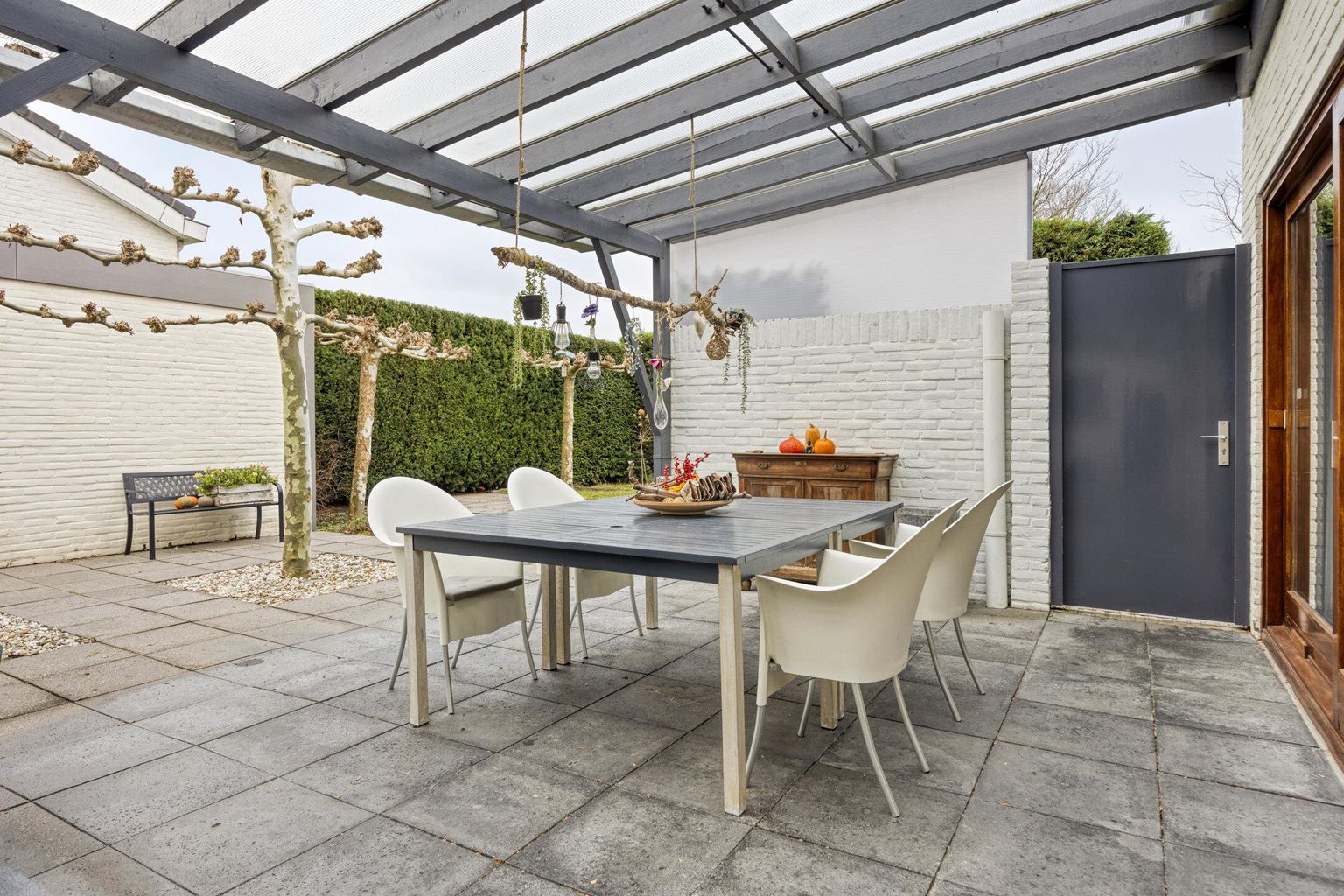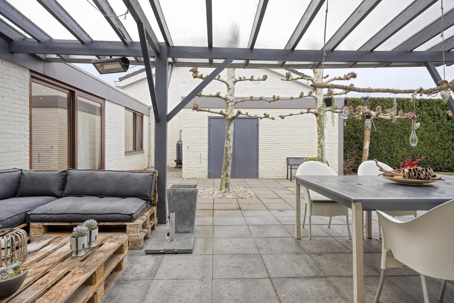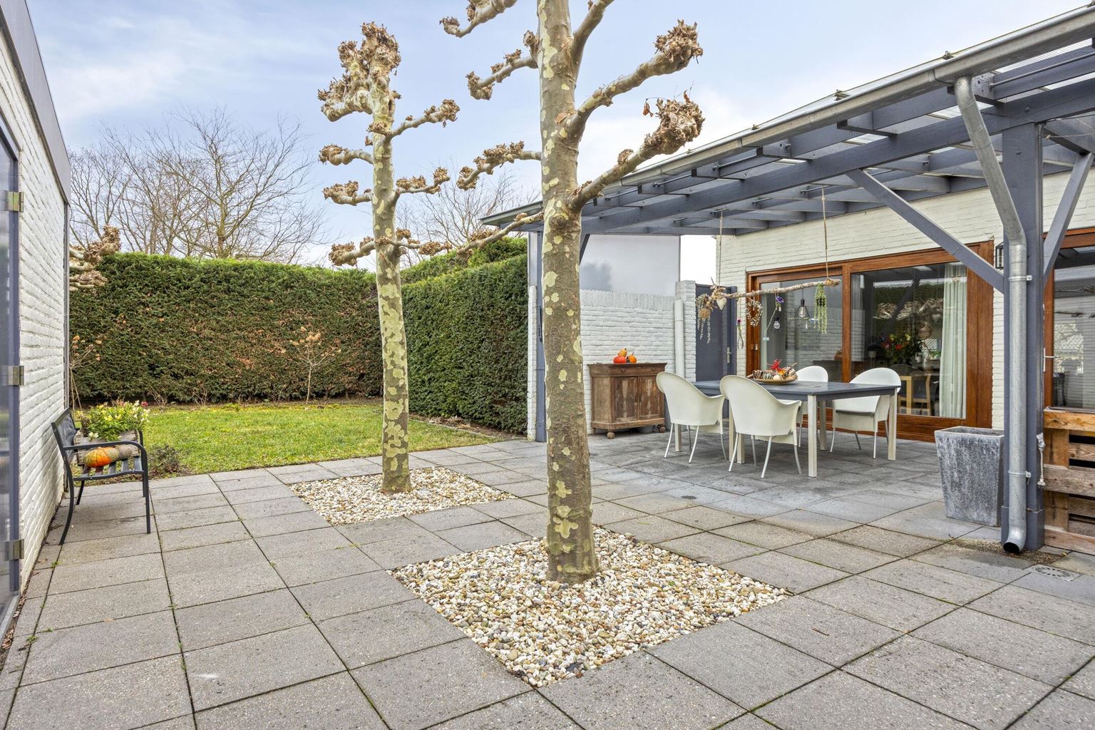 De zonnige op het oosten gelegen achtertuin biedt volop comfort en functionaliteit. De tuin is fraai ingericht en beschikt over een overkapping, waardoor je hier het hele jaar door kunt genieten van het buitenleven. Daarnaast is er een royale berging, volledig uitgerust met elektra, water en verwarming - ideaal als werkruimte, hobbyruimte of extra opslag. De achtertuin is bovendien praktisch bereikbaar via de oprit, wat extra gemak biedt voor bijvoorbeeld fietsen, tuinmateriaal of onderhoud. Een heerlijke buitenruimte met verrassend veel mogelijkheden!