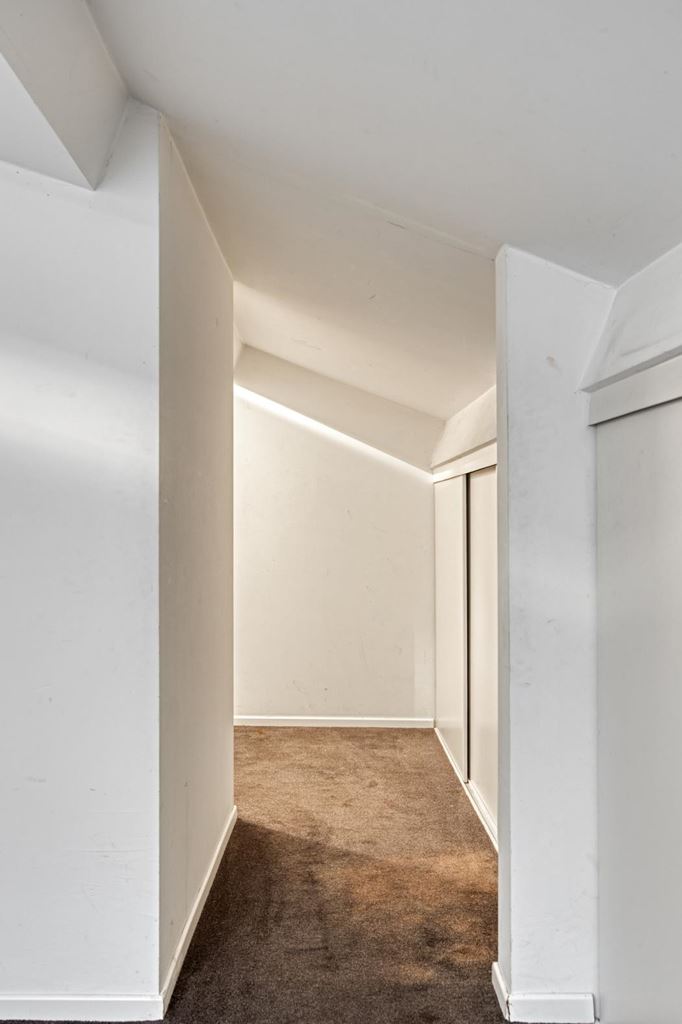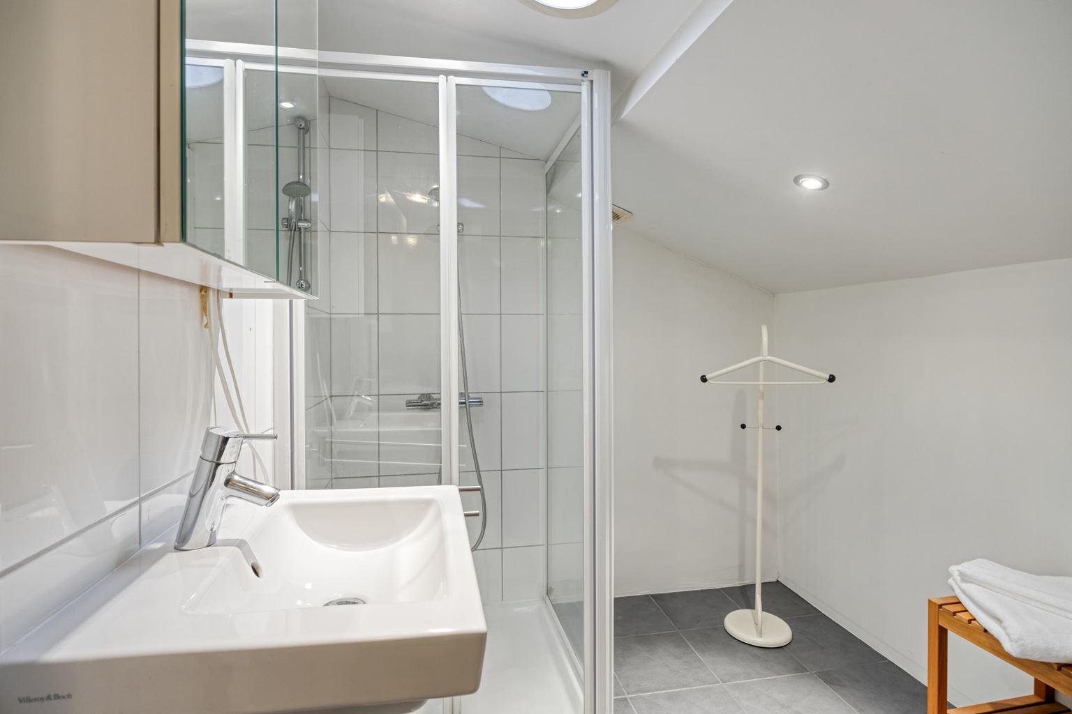 Vanuit de overloop zijn de overige twee slaapkamers, het separate toilet en de badkamer bereikbaar. In het plafond boven de trap is een daglichtbuis geplaatst, wat zorgt voor extra natuurlijke lichtinval. Slaapkamer III (ca.13m²) en slaapkamer IV (ca.11m²) zijn beide voorzien van airconditioning en een dakkapel. Achter de schuine dakwanden bevindt zich extra bergruimte. In slaapkamer III is de cv-ketel netjes weggewerkt achter een wandpaneel en goed bereikbaar. De overloop en beide slaapkamers zijn afgewerkt met vloerbedekking. Het separate toilet is grotendeels betegeld en uitgerust met een wandcloset. De badkamer (ca.4m²) is deels betegeld en beschikt over een wastafel met meubel en stopcontact, een douchecabine en vloerverwarming. Ook hier is een daglichtbuis aanwezig, wat bijdraagt aan een prettige en lichte ruimte.