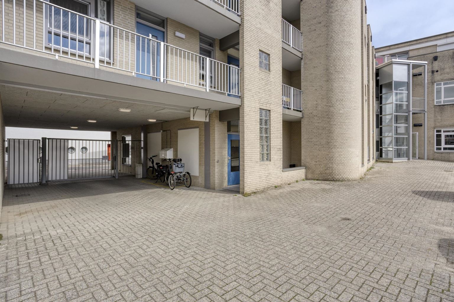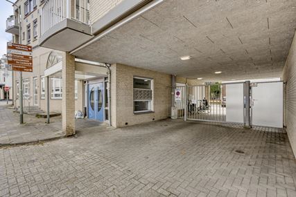 Vanuit de Oranjelaan heeft men via de poort toegang tot de achtergelegen parkeerplaatsen, hier heeft men een vaste parkeerplek.