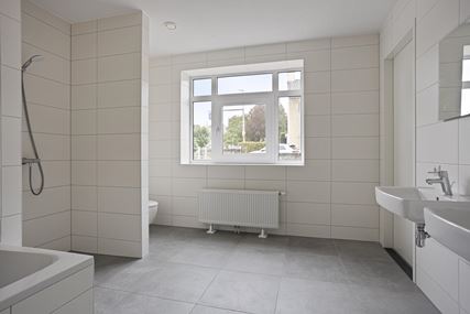 Badkamer voorzieningen | : | ligbad, toilet, dubbele wastafel, inloop douche |